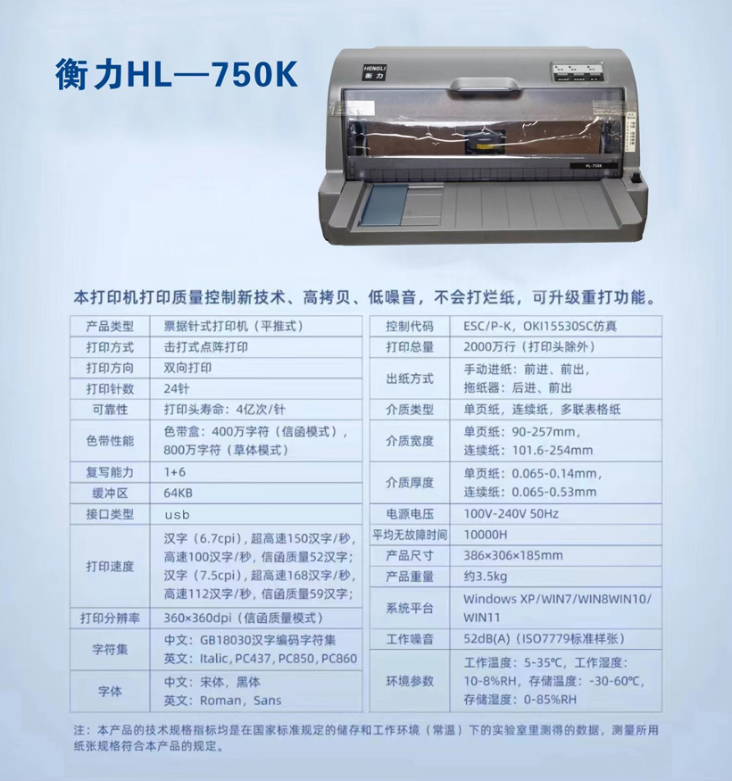 衡力HL-750K打印機(jī)打印質(zhì)量控制新技術(shù)、高拷貝、低噪音,不會打爛紙,可升級重打功能。